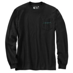 Carhartt Mens Black Relaxed Fit Heavyweight Long Sleeve Pocket Mountain Graphic T-Shirt